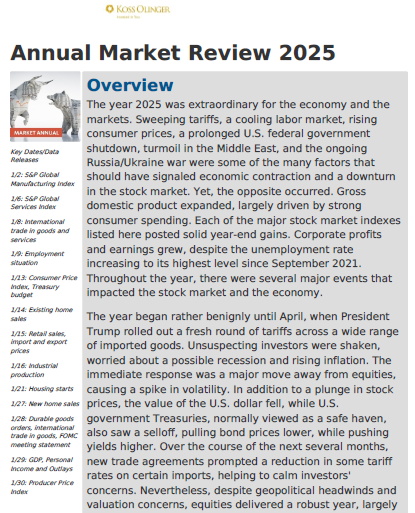 *The following Market Review was prepared by and legally licensed through AdvisorStream. Koss Olinger had no input nor involvement in creating the Market Review.