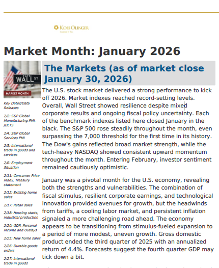 *The following Market Review was prepared by and legally licensed through AdvisorStream. Koss Olinger had no input nor involvement in creating the Market Review.